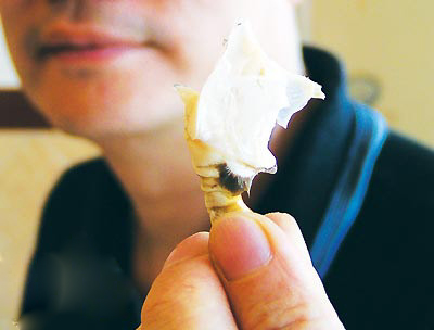 3、先吃蟹盖部分,用小勺把中间的蟹胃部分舀出,轻轻将外面包裹着的蟹黄吮干净。注意,不要吮破中间那个呈三角锥形的蟹胃,应将其丢弃;